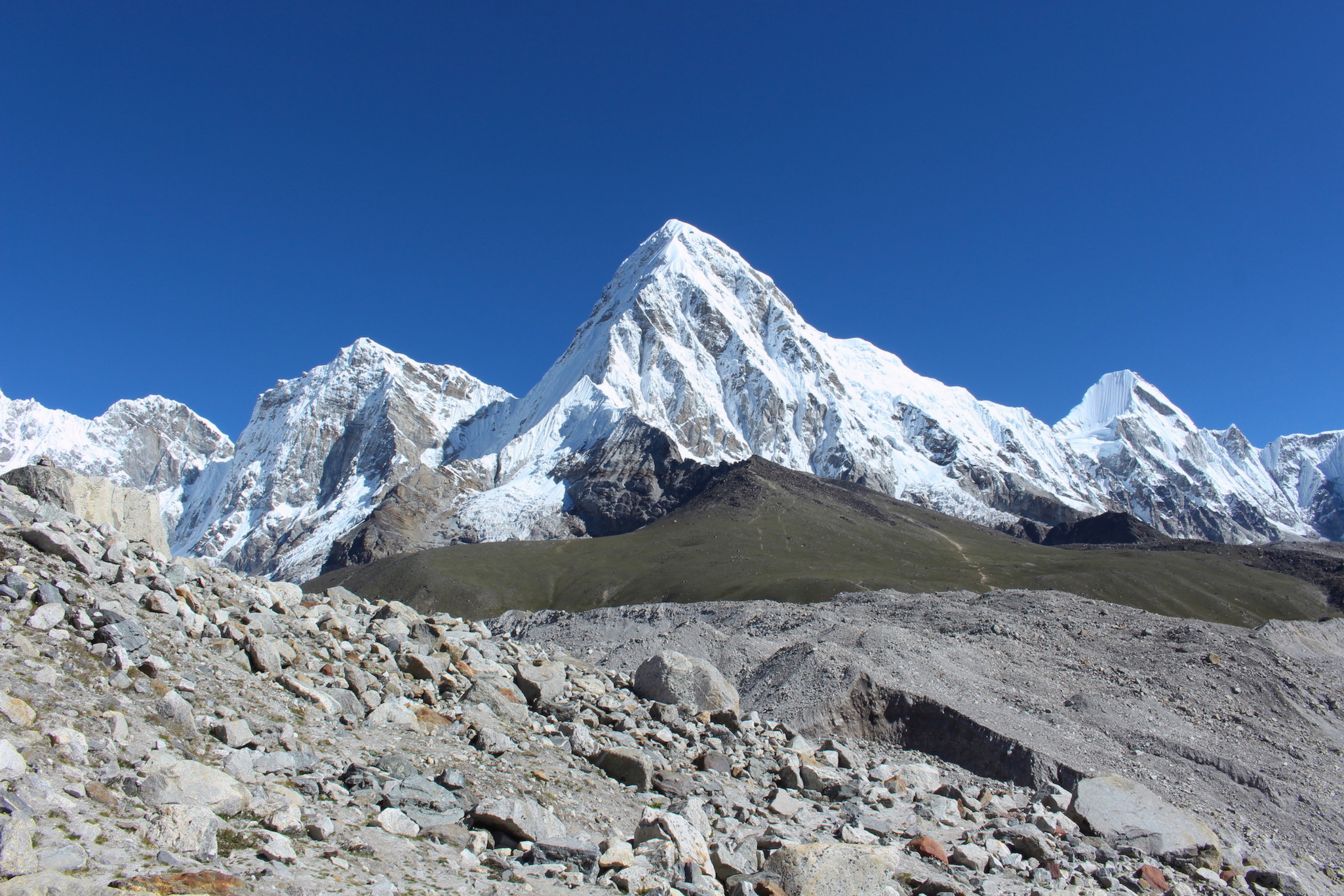 Hike from Lobuche is a gradual uphill trail at right alongside the Khumbu Glacier toward Gorekshep. We will cross Pumari glacier prior to reaching the tiny but last Himalayan valley of Gorekshep. Once settled at our room at lodge, and lunch, we get ready for a day hike to Everest Base Camp. Gorekshep to Everest Base Camp trail is a sandy and rocky path alongside the Khumbu Glacier with Nuptse view towering us across the valley.