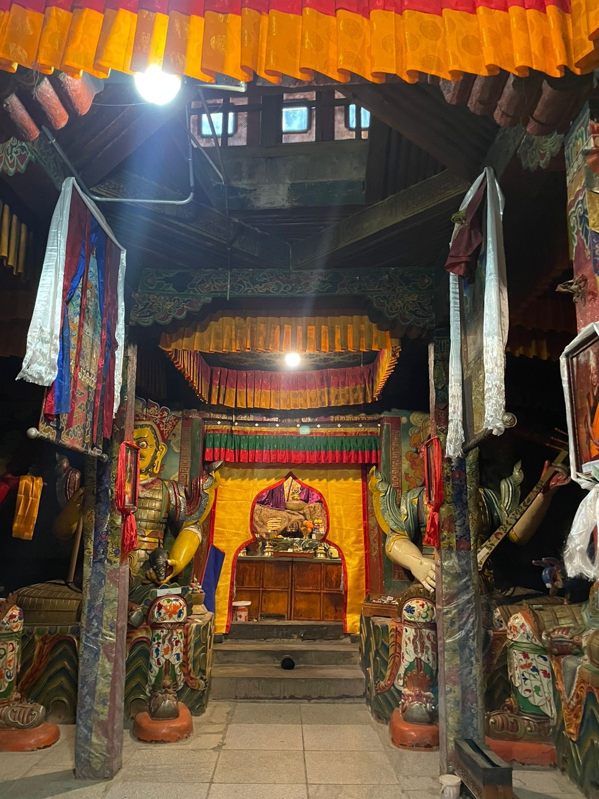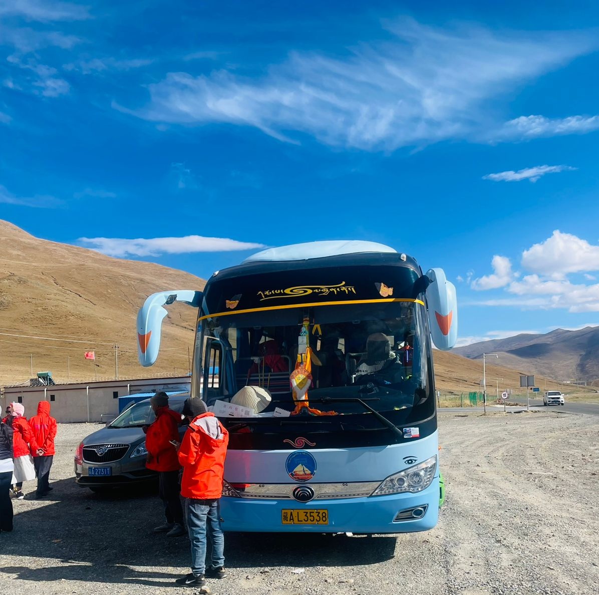 The scenery along the way will change from lush green areas to barren land, and you will be welcomed to this area by prayer flags.